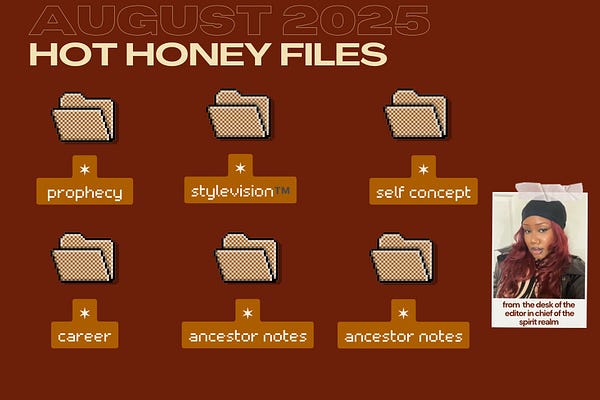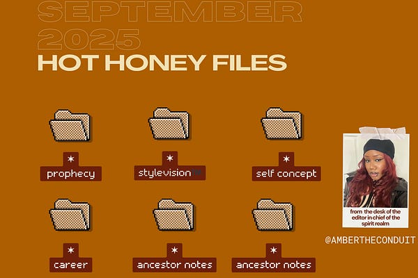 a digital grimoire stationed at the crossroads of prophecy, style, beauty, astrology + ancestral memory — channeled by Amber the Conduit + home of the Hot Honey Line, a one-of-one digital prophecy hotline delivered straight to your inbox.